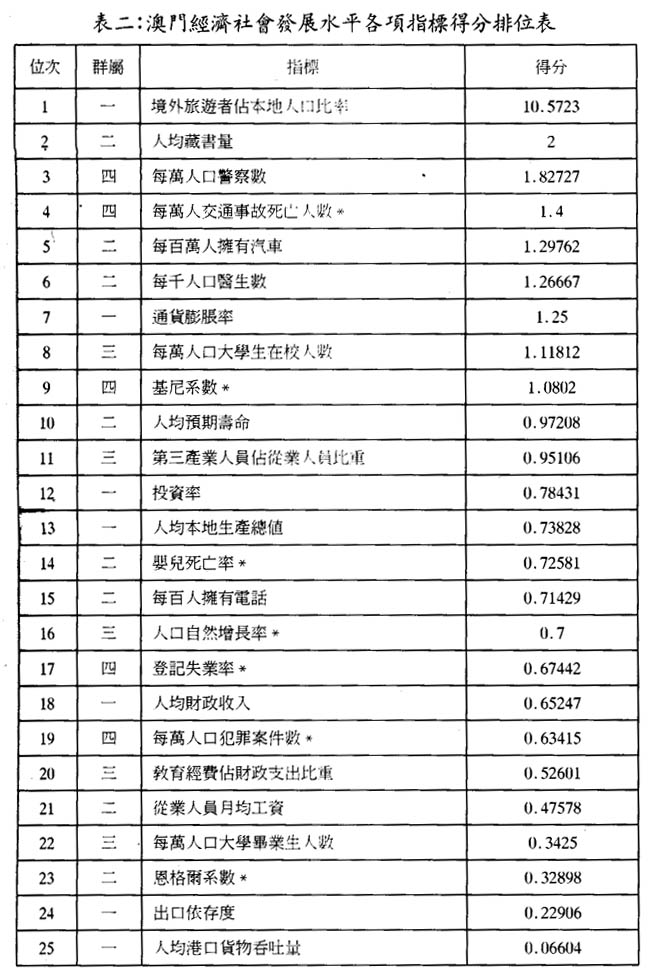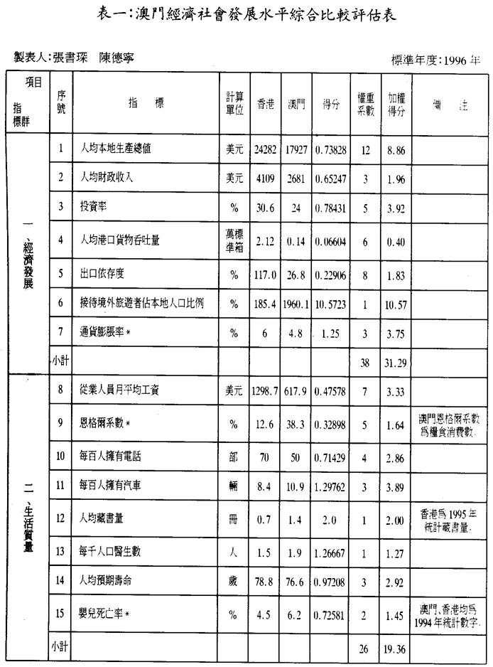 二、澳門經濟社會發展水平的綜合比較評估和指標對比分析