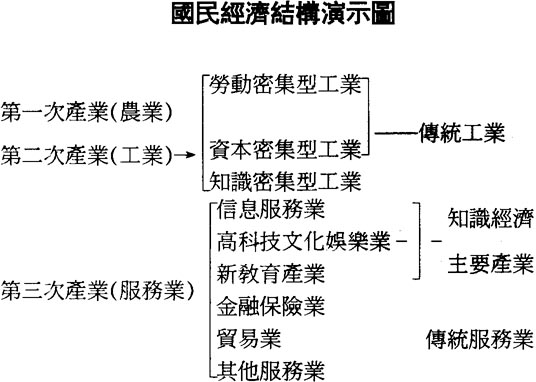 17世紀的英國經濟學家威廉·配第(Willian Petty)在他的名著《政治算術》中描述過這樣的現象,配第認爲:製造業比農業,進而商業比製造業能夠得到更多的收入。這種不同產業之間相對收入上的差異就會促使勞動力向能夠獲得更高收入的部門轉移。20世紀初,另一位英國經濟學家科林·克拉克(C.G.Clark)提出了三次產業分類法,並對人均收入與勞動力的關係問題進行了實證硏究,通過大量硏究,他發現:人均國民收入水平越高的國家,農業勞動力在全部勞動力中的比重相對越小,而第二、三次產業的勞動力所佔比重相對越大;反之,人均國民收入水平越低的國家,農業勞動力所佔的比重相對越大,而第二、三次產業勞動力所佔比重相對越小,這就是著名的配第——克拉克定理。配克定理主要指出了在經濟發展中勞動力在第一次,第二次,第三次產業分佈結構的演變規律。而且,還指出了勞動力分佈結構變化的動因是產業之間在經濟發展中產生的相對收入差異。在這一硏究基礎上,美國著名經濟學家庫茨涅玆對三次產業所實現的國民收入的比例關係及其變化規律問題進行了探討,他把第一二三次產業分別稱爲“農業部門”(A部門)、“工業部門”(I部門)和“服務部門”(S部門)。通過實證硏究,他得到的結論是:隨着一個國家或地區經濟不斷發展,農業部門(第一次產業)實現的國民收入和農業勞動力在全部勞動力中的比重不斷下降;工業部門(第二次產業)的國民收入相對比重,不斷上升,但勞動力相對比重卻大體不變;服務部門(第三次產業)的勞動力相對比重不斷上升但國民收入相對比重略有上升。也就是說,隨着人均收入的不斷上升,工業部門是創造社會財富的主要部門,而服務部門是解決勞動力就業的主要部門。我們認爲,庫氏的這一重要結論涵蓋了知識經濟的內容,對澳門經濟轉型有重要啓示作用。庫氏所說的工業部門或傳統的“第二次產業”,進一步可以區分爲“勞動密集型”產業,資本密集型和“知識(技術)密集型”產業三種類型,前兩者屬於實物經濟產業,而知識密集型產業就是知識經濟的內容。庫氏所說的工業部門是社會財富的主要創造者,這裡的工業部門主要指知識密集型產業,因爲隨着經濟發展,勞動密集型產業和資本密集型產業會逐步退居次要地位。庫氏所講的服務部門或傳統的第三次產業,包括:商業、金融保險業、服務業、不動產業、政府機關、國防、文化娛樂、敎育及其他服務業。其中敎育產業和以現代高科技爲手段的文化娛樂產業是知識經濟的重點產業。顯然,知識經濟的主導產業涵蓋在第二、三次產業的內容中,發展知識經濟的實質就是發展知識密集型產業和以高科技爲手段的文化娛樂產業和新敎育產業。以高科技爲手段的文化娛樂產業在澳門國民經濟中已經居重要地位,從這個意義上說,澳門的知識經濟已有相當規模。這爲將來經濟轉型,發展更高層次的知識經濟奠定了基礎。