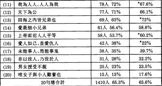 1 20句格言中,關於對社會、對群體的道德方面的,按贊同率的高低排列如下: