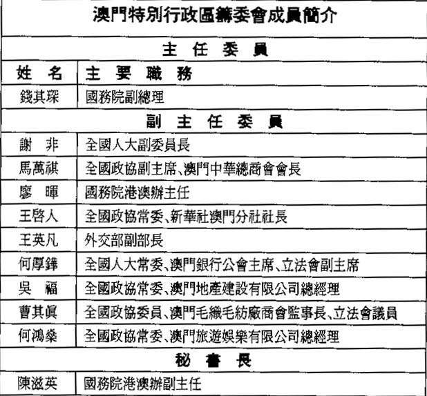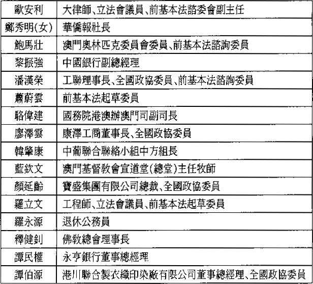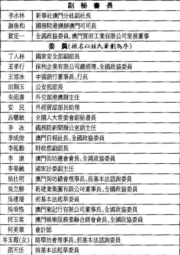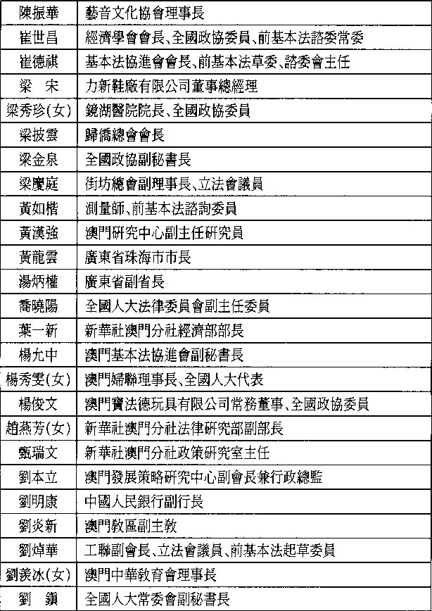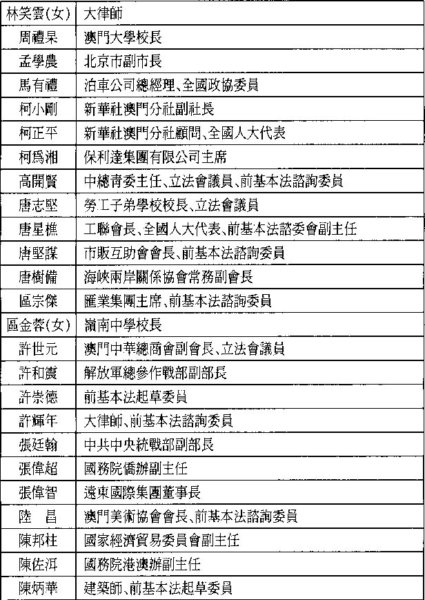 附錄1 全國人大澳門特別行政區籌備委員會組成人員名單
