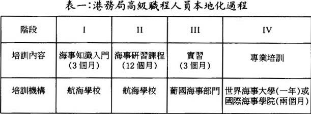 時至今天,港務局的主要職能沒有太大的變化。人員的配置方面,亦經歷了自80年代末開始的本地化過程,由於海事部門的專業性強,其培訓過程亦有別於其他大部分的公共部門(詳見表一),不能單單集中在語言和行政方面的培訓上。