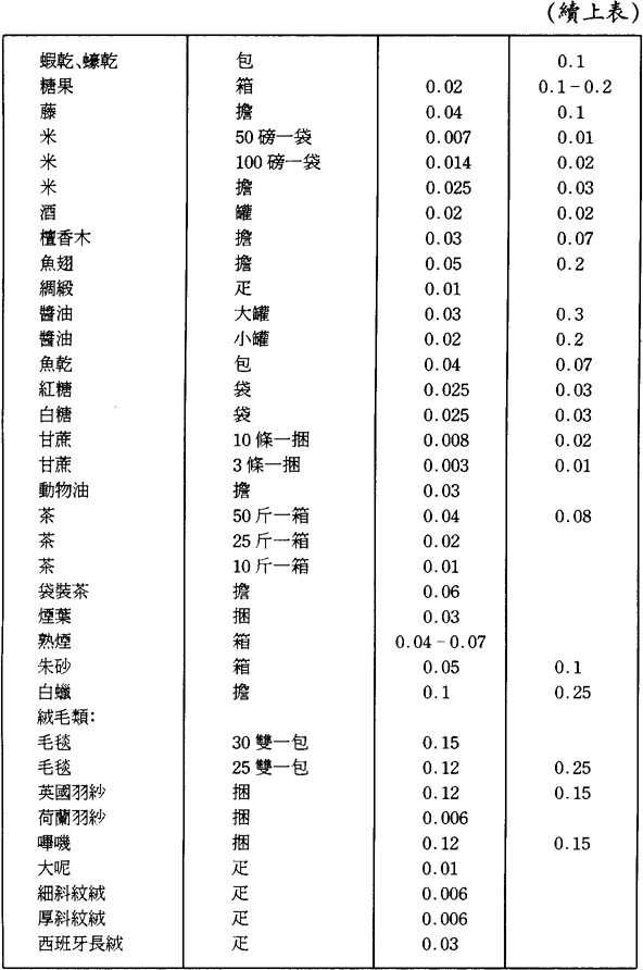 有必要對這種強行徵稅的性質略加評論。1875年戶部曾就釐金一事,奏報皇上稱,1861年是該稅項開徵之年。此言大謬。在1857年或1858年,廣東已引入釐金徵收方式,以籌措軍費。在此之前,長江各省已開徵釐金多時,其程序爲廣東所效法。不過,廣東的實施辦法並不和長江各省一致。在浙江,釐金分‘行釐”、“坐釐”兩種,前者徵收的對象是運輸途中的貨物,後者則產地或消費地徵收。“行釐”和“坐釐”又分兩種:一爲“起釐”,徵收二釐;一爲“驗釐”,徵收八釐。在廣東,北江各釐卡起初僅就沿江往來貿易徵收一項“起釐”和一項“驗釐”;東江、西江各釐卡僅徵收“起釐”一項,不徵“驗釐”。故此,廣東初僅徵收“行釐”。其後,還引進“坐釐”。據說,在東江,稱作“坐釐”或“坐賈”;在西江,稱作“埠釐”;在介乎於東、西江的北江,則混雜使用其間的稱謂。所徵貨物,僅限於一地之主產;貨物在一地徵繳之後,可在他地免徵。徵收方法名義上分入口與出口兩項,各按關稅減半徵收,但極少兩項共徵。如今徵收辦法已完備,所有貨物應徵三種釐金:“起釐”、“驗釐”及“坐釐”。“起釐”與“驗釐”徵全稅之二釐,“坐釐”徵半稅之一釐,或全部計五釐。如屬短程貨物,則不必三項全徵。另一方面,無論省內運程多遠,如仍爲起點裝運時之情形,均不再多徵,但貨物換船或與脫離原先委託,則要重新計徵。該規定適用於過往此類稅廠的貨物,“補抽釐金”或“沿海(Maritime)釐金”替代“坐釐”,故徵半稅。各處釐金稅卡的老練官員都極力主張:起點裝運的船隻大都超出粵省省界,必須交納二倍半的關稅,或五釐釐金。實際上,所徵稅釐頗重,多數情况超過兩釐。需要公正地指出:商民們直接反駁官府的主張,他們證實經常交納超過二倍半的稅釐,從澳門到肇慶的貨物則要納稅釐三倍半。