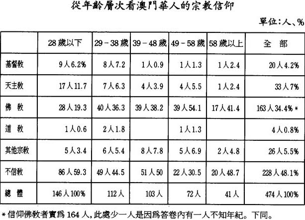 第二,我們試從年齡的層次分析澳門人的宗敎信仰。見下表: