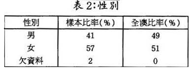 在男女性別之分佈上,樣本中的女性比率較高,顯示出與全澳的性別比例略高特徵: