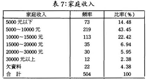 首先我們必須承認,經濟收入在一個家庭中的重要地位,它對家庭結構、生活水平(包括像住房,子女受敎育程度、職業選擇等)、代際關係和靑年人的價値取向都具有極爲重要的影響力。所以是次調查,我們對靑年人與家庭收入互動關係作了較爲細仔的相關分析。