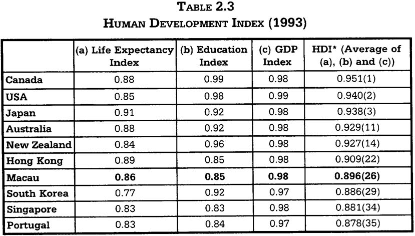 Source: Indice de Desenvolvimento Humano de Macau 1996.