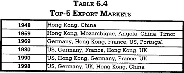 Notes: *Trade restricted to Hong Kong and China only; **Export concentrated in Portugal and its dependent territories due to the special duty-free privileges granted by the Portuguese government.