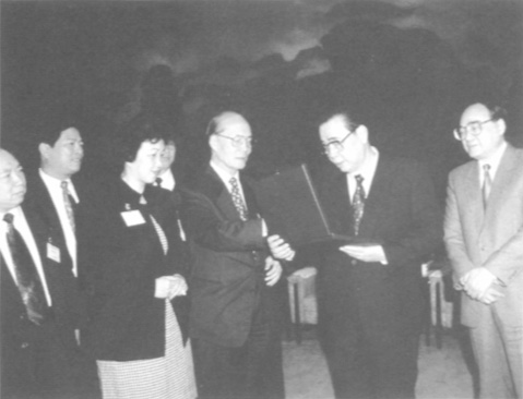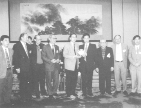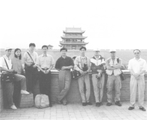本報常務副總編輯兼採訪課主任陸波(前左二)九三年率澳門記者團訪問新疆,全國政協主席李瑞環與採訪團合攝。
