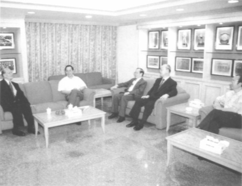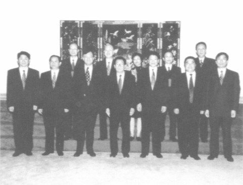 本報副總編輯梁福擎(右二)應邀訪問河北,與河北省委書記程維高(左二)、省長葉連松(左四)等合攝。