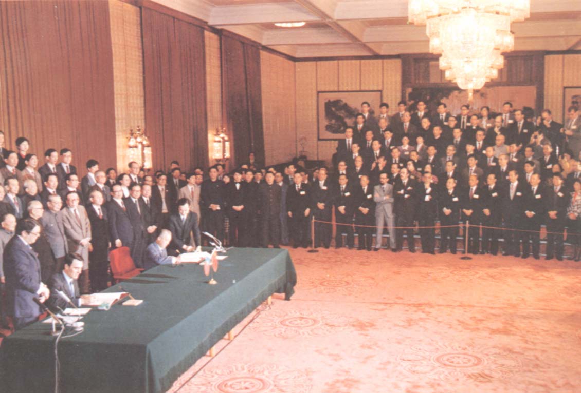 Cenário da assinatura oficial da declaraçao Conjunta sino-portuguesa.