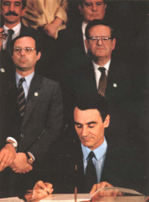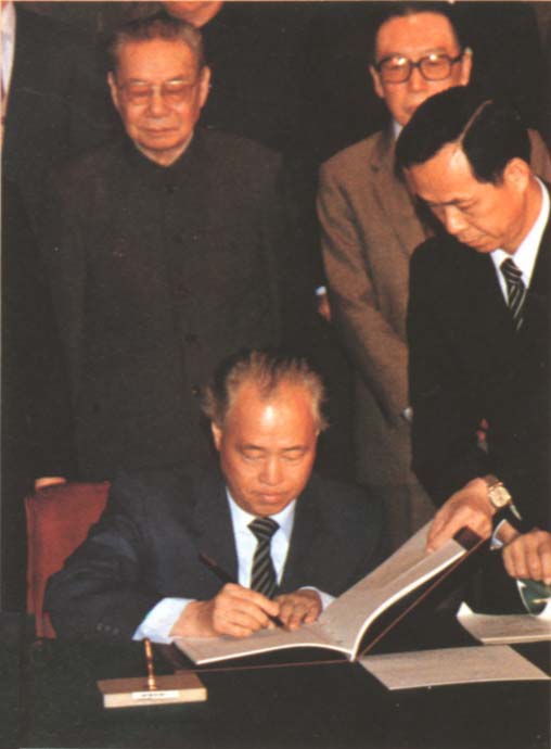 中華人民共和國國務院總理趙紫陽在中葡聯合聲明上簽署。
