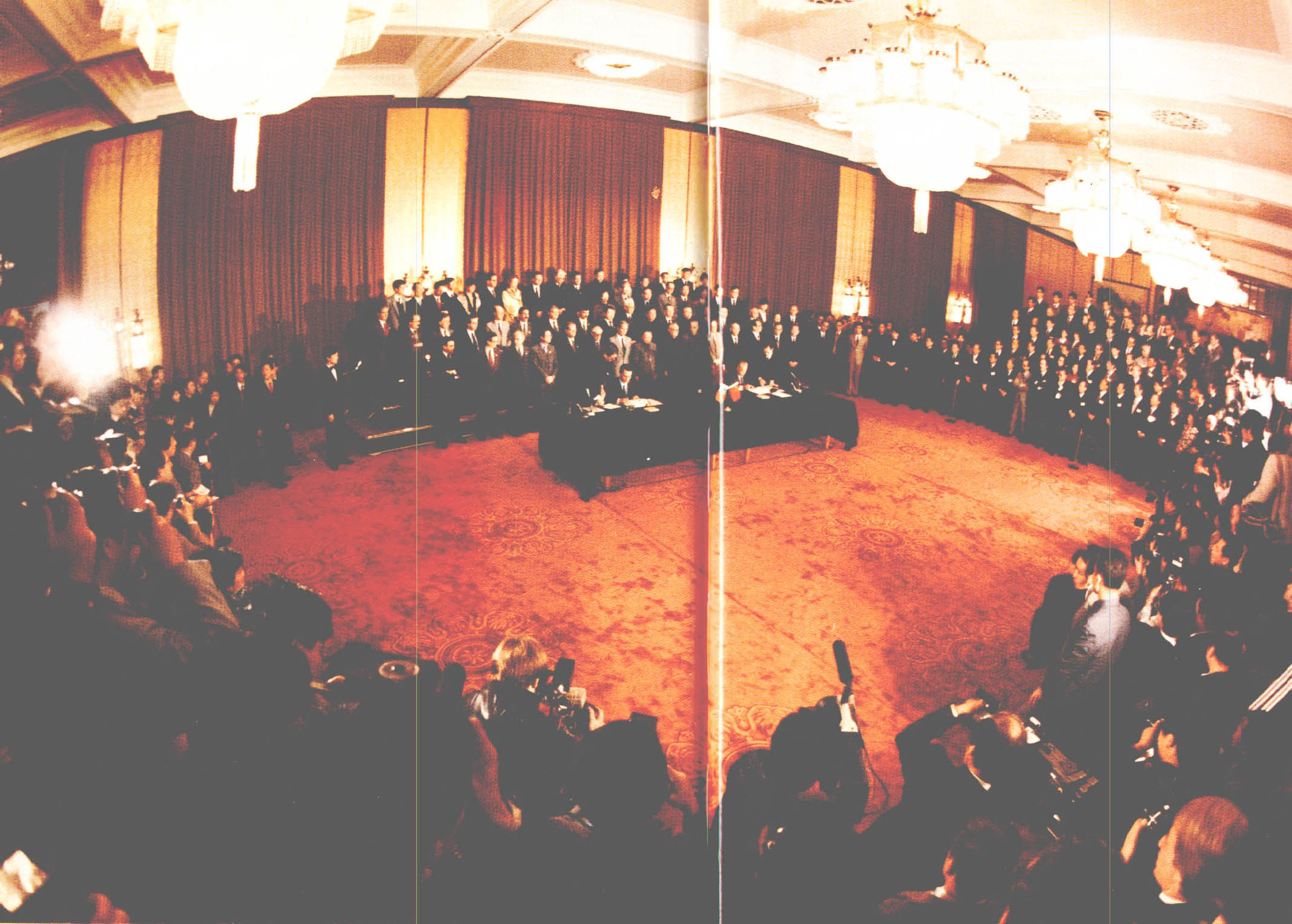 結束過去,走向未來——中葡關於澳門問題的聯合聲明簽署會塲全景。