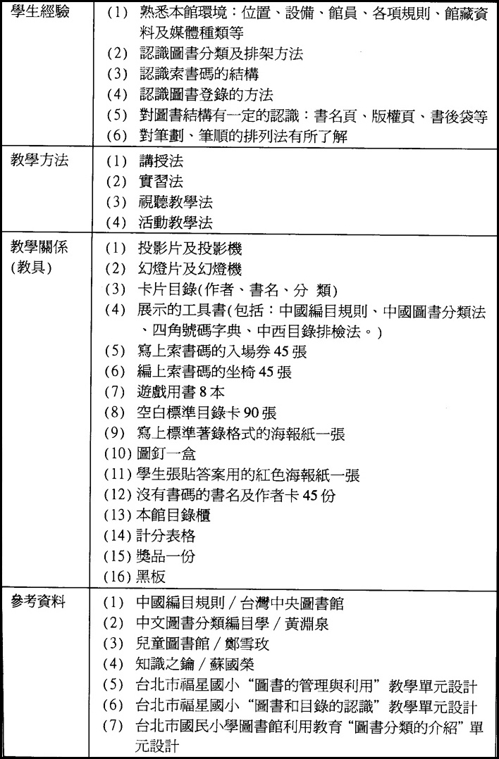 爲使讀者更瞭解上列十點的教學內容,下節將列出七個教學單元設計以作參考。