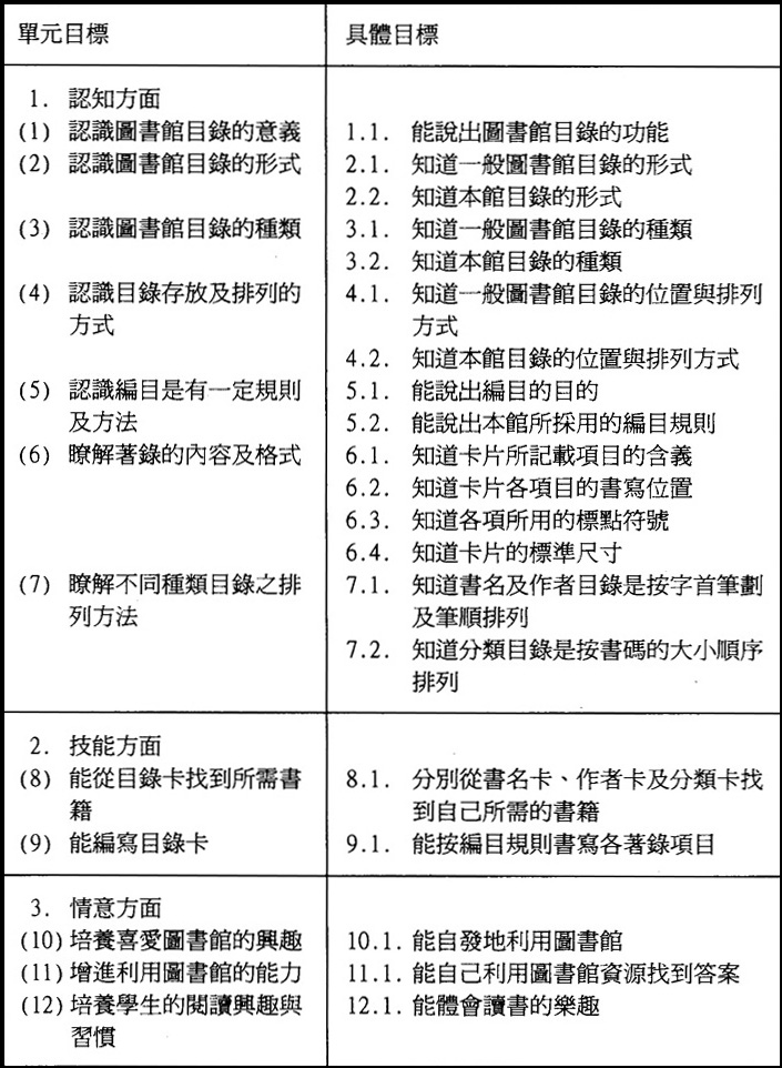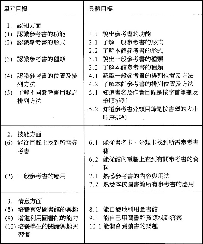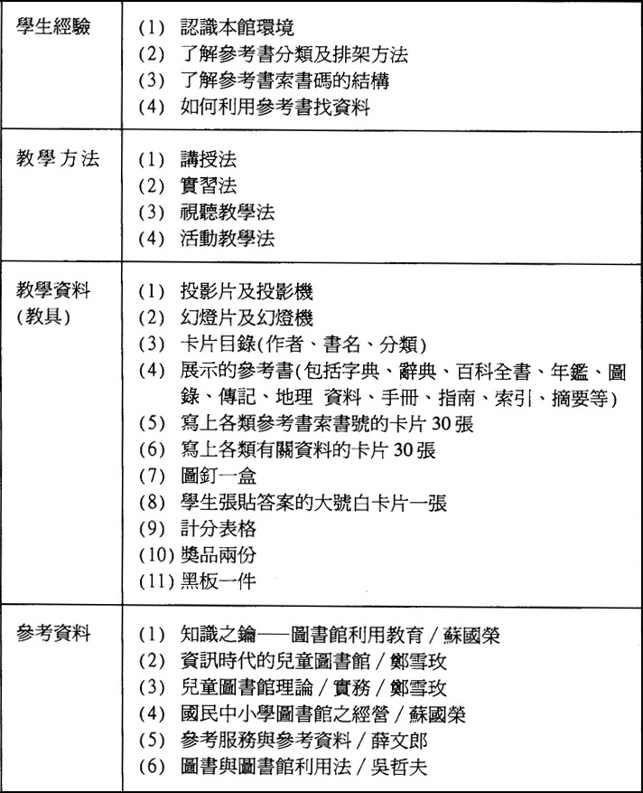 學校圖書館利用教育實施的內容,主要包括實施的領域與範圍,實,施要領,教學的年級及實習的內容等四點,其中實施的領域與範圍一般可分爲下列各點: