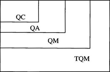 全面質量管理(Total Quality Management,TQM)則包括了上述三種槪念,如下圖所示: