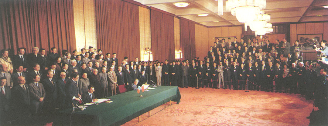 中共中央顧問委員會主任鄧小平、中華人民共和國主席李先念出席了簽字儀式。