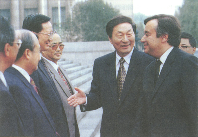 ▲22日下午,全國人大常委會委員長李鵬在人民大會堂會見古特雷斯總理。