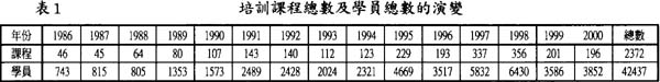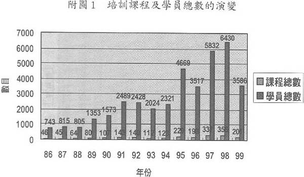 上述期間的課程數目和學員人數並非每年持續增長。而1993 年、1996年及1999年的培訓活動和學員人數則明顯較上一年減少。