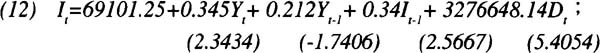 (3)It=a4+a5Yt+a6Yt-1+a7It-1+e3,t