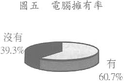 調查結果顯示,有60.3%(527戶)的受訪家庭擁有電腦,其中70%的電腦(369台)已經連上互聯網。