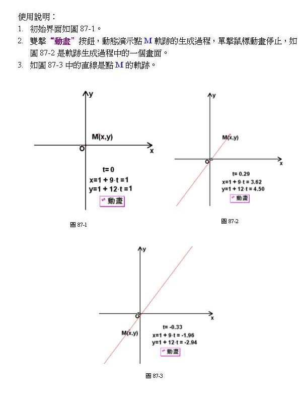 課件八十七 動點M作等速直線運動,它在x軸和y軸方向的分速度分别爲9和12,運動開始時,點M位於A(1,1),求點M的軌跡。
