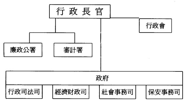 由此可見,香港政府爲了維持高效運作,也不斷銳力進取變革。所建立的行政架構,除開個別名稱上的改變,與人員一起基本上原封不動地過渡到特別行政區政府。這套可借鑒的行政架構,縱橫層次分明(楊奇,1993年)。縱向有3個層次: