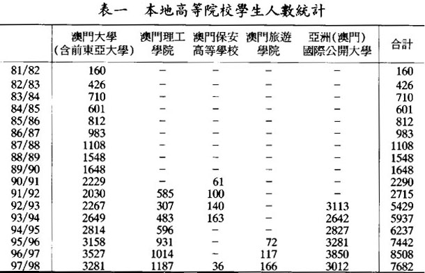 1987年《中葡聯合聲明》簽訂後,政府更加注意到公務員本地化的重要性。鑑於培養人材的迫切性,除開增加獎學金名額鼓勵澳門靑年到國內外讀大學並建立學歷認可制度外,次年委託澳門基金會收購了1981年成立的私立澳門東亞大學,並設立過渡期急需的公共行政、法律、敎育、科技方面的課程,同時還實施減免學費政策,吸引本地人就讀。這些年培養出來的數以千計的人材,的確大大充實了公務員隊伍,提高了公務員的整體敎育文化水平。