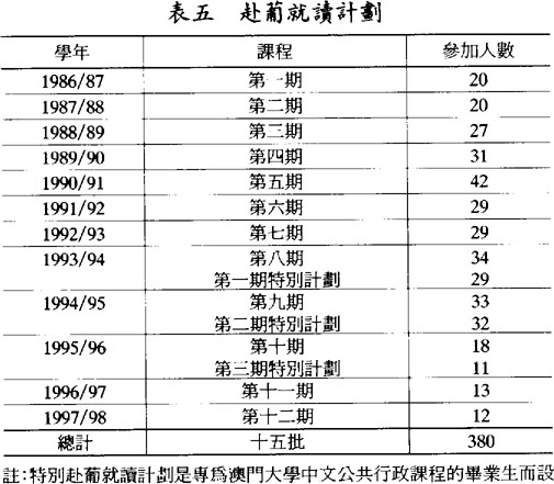 名義上,澳門政府有一個負責行政事務的政務司,下轄一個負責公務員管理的執行部門——行政暨公職司。實際上,無論是政務司還是行政暨公職司,都不具備統一管理整個公務員隊伍的權力。即使有一些,也基本上是培訓方面的。而政府近10年在公務員培訓方面的確花了功夫,也舍得投資,如前述赴葡就讀,1990年開始的赴京就讀以及在澳門舉辦的形形色色培訓活動,已爲數以千計的公務員提供了進修機會,雖然其效果和效率尚有待評估,但總體而言,作用還是積極的。