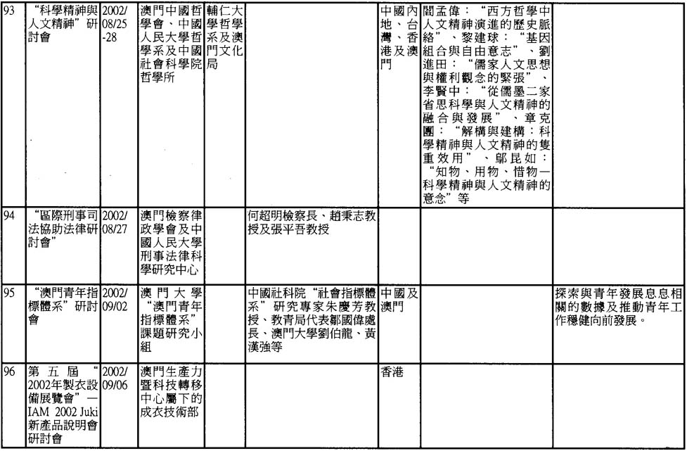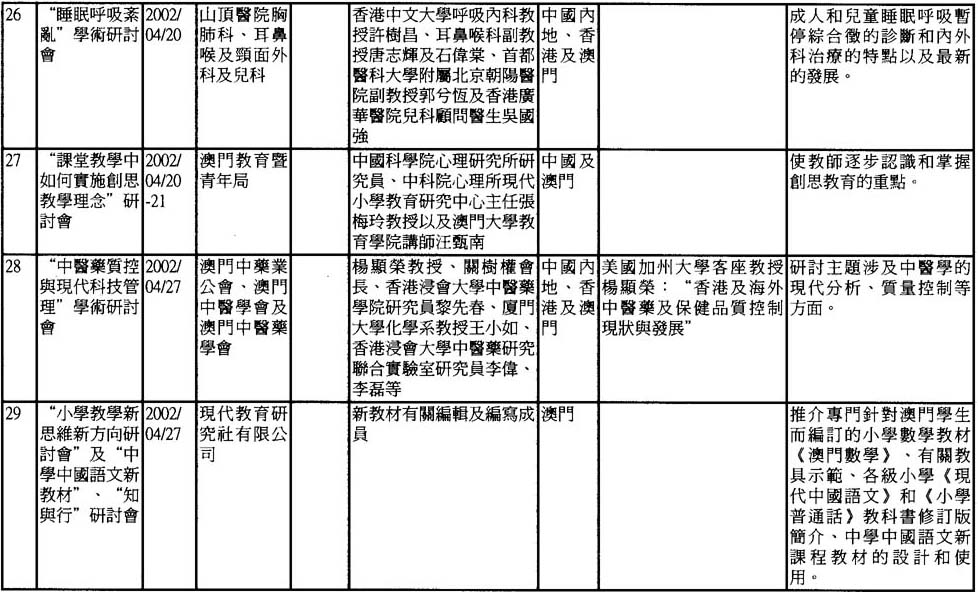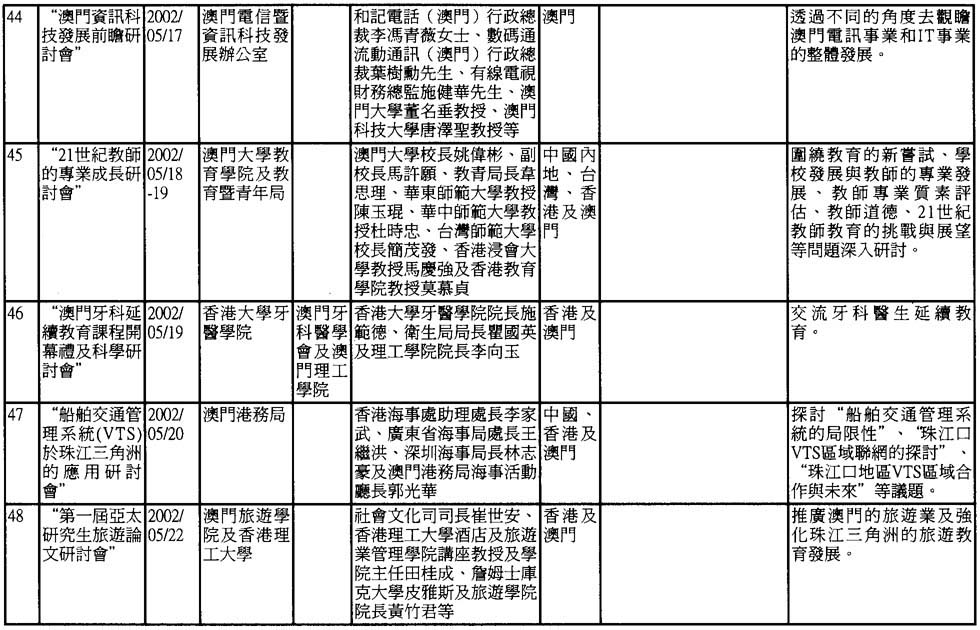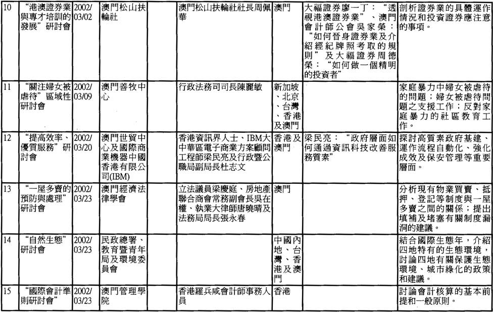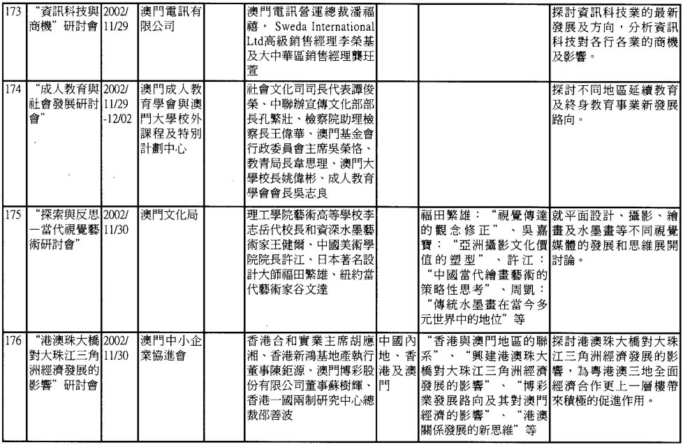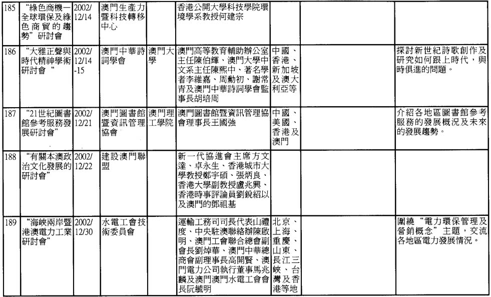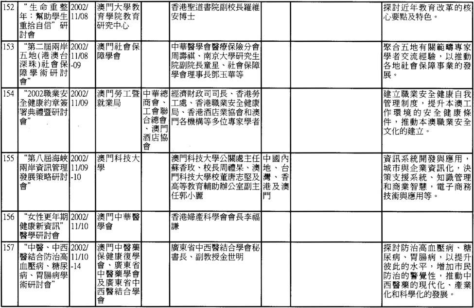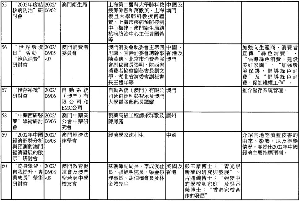 2002年澳門舉辦之研討會資料一覽