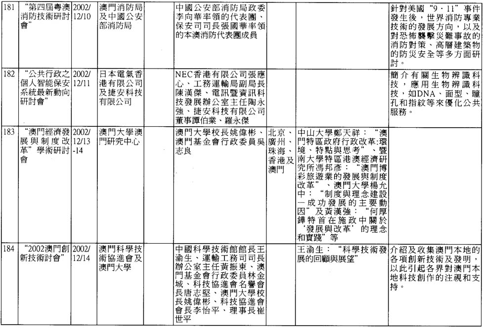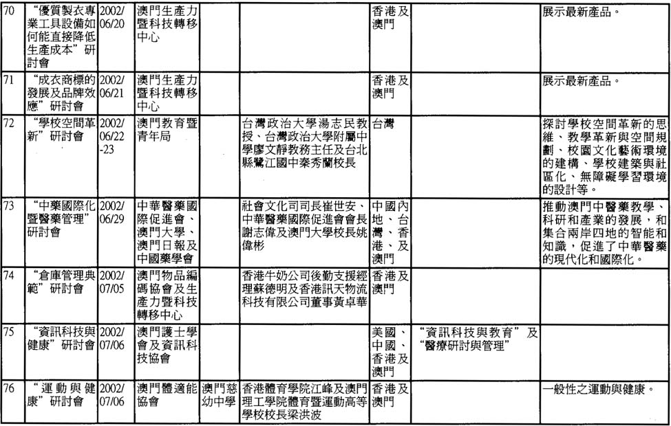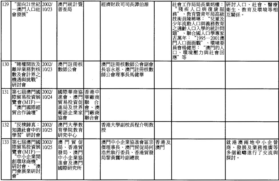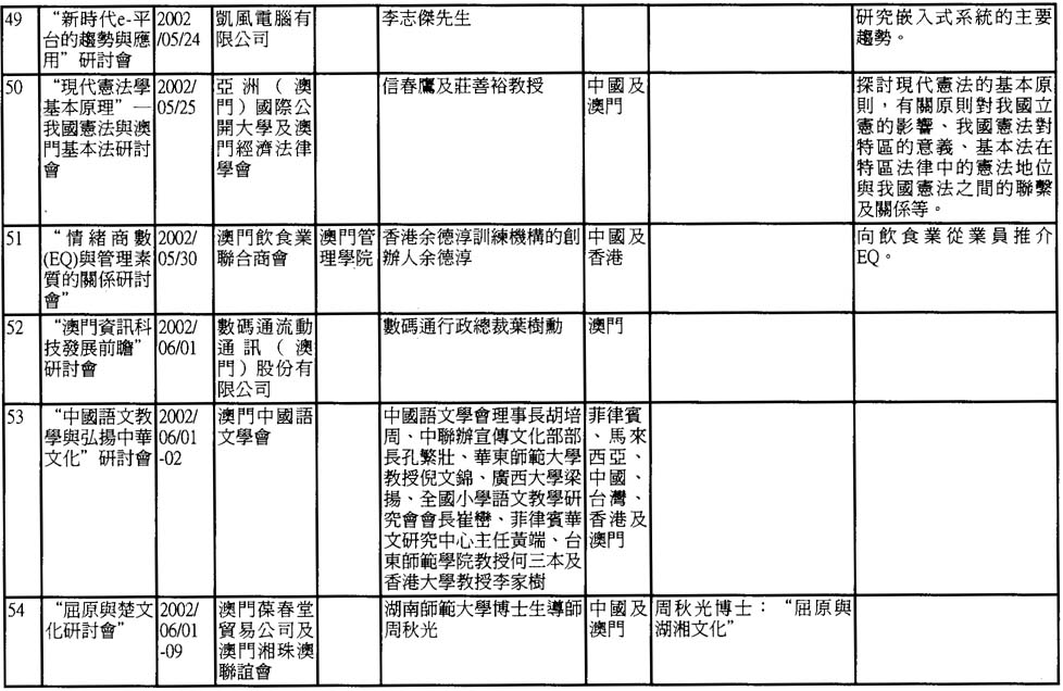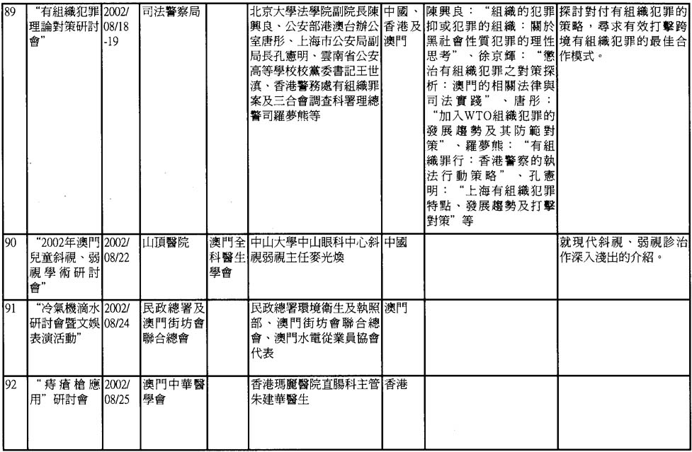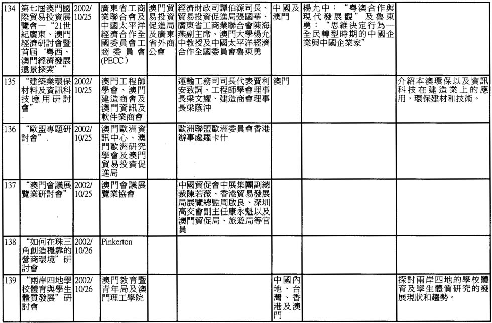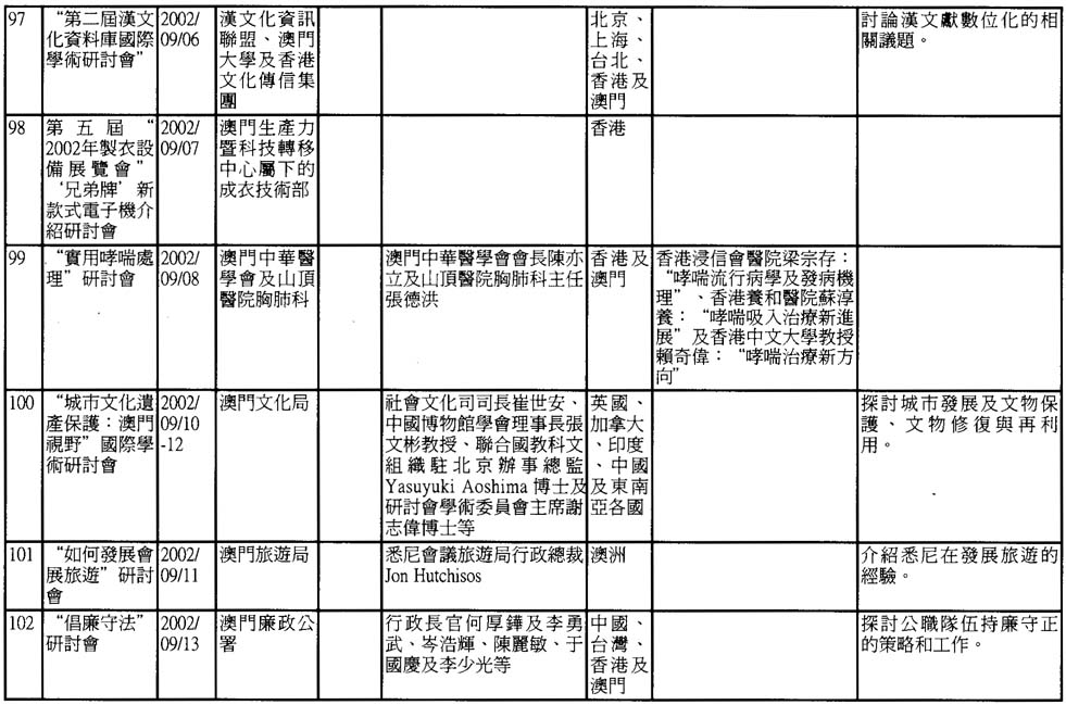 2002年澳門舉辦之研討會資料一覽
