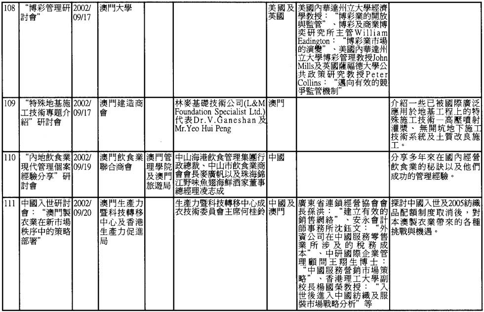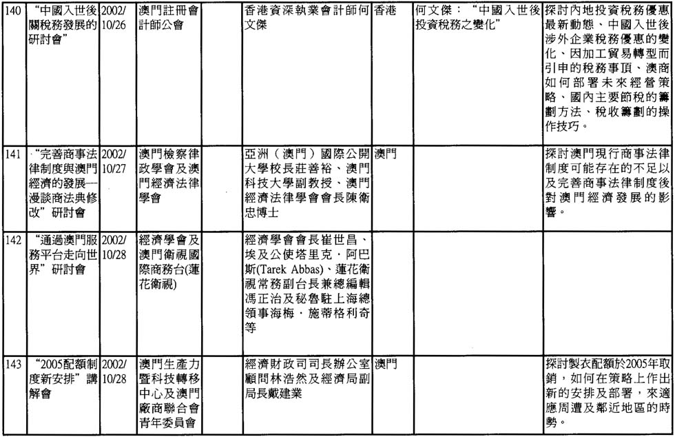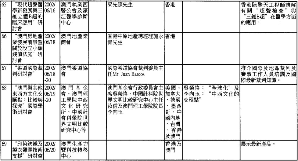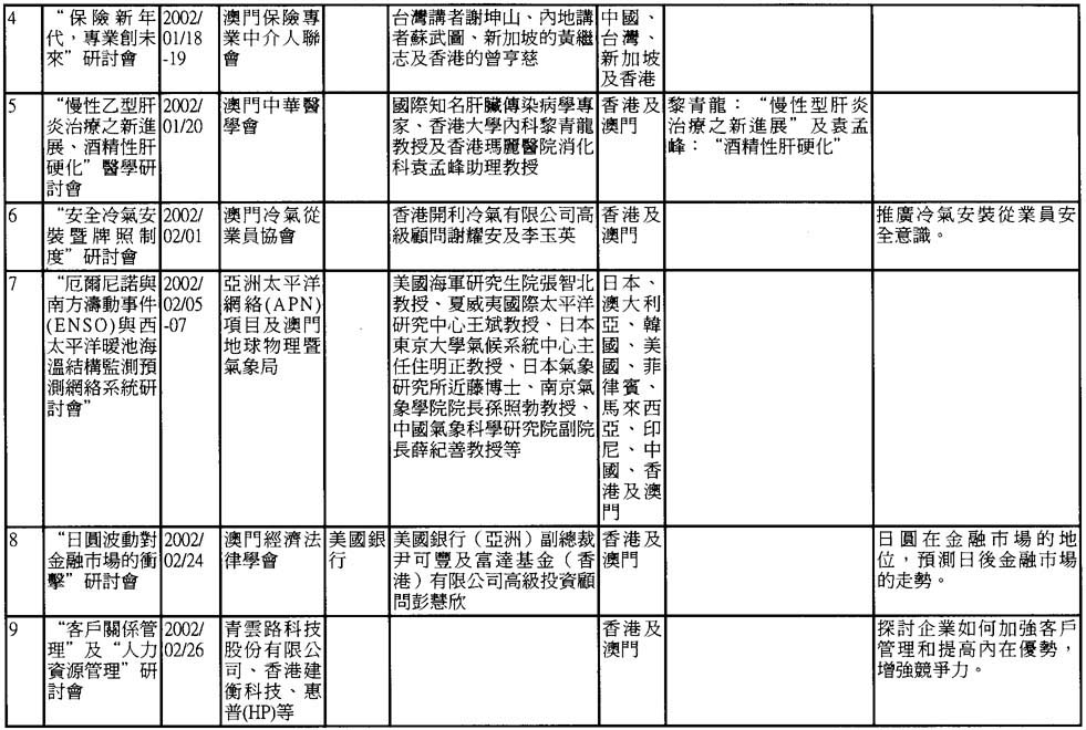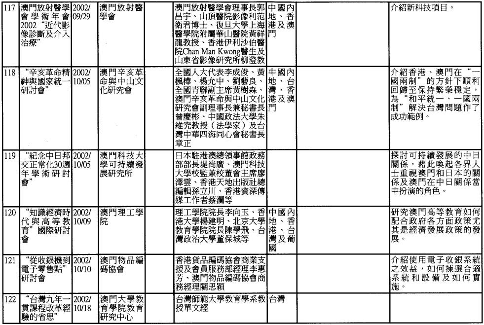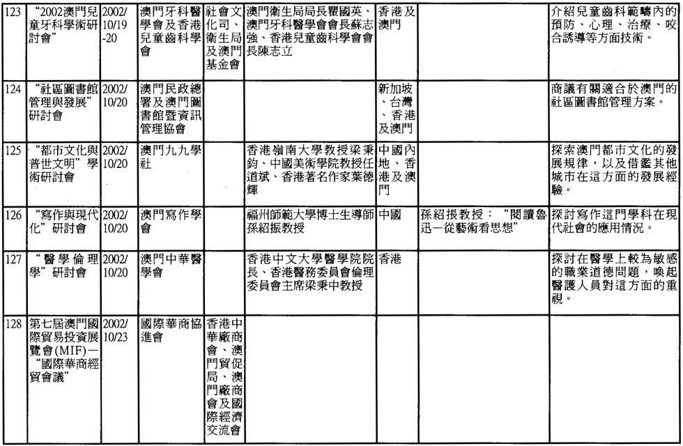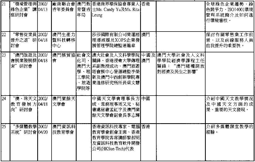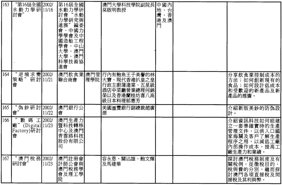 2002年澳門舉辦之研討會資料一覽