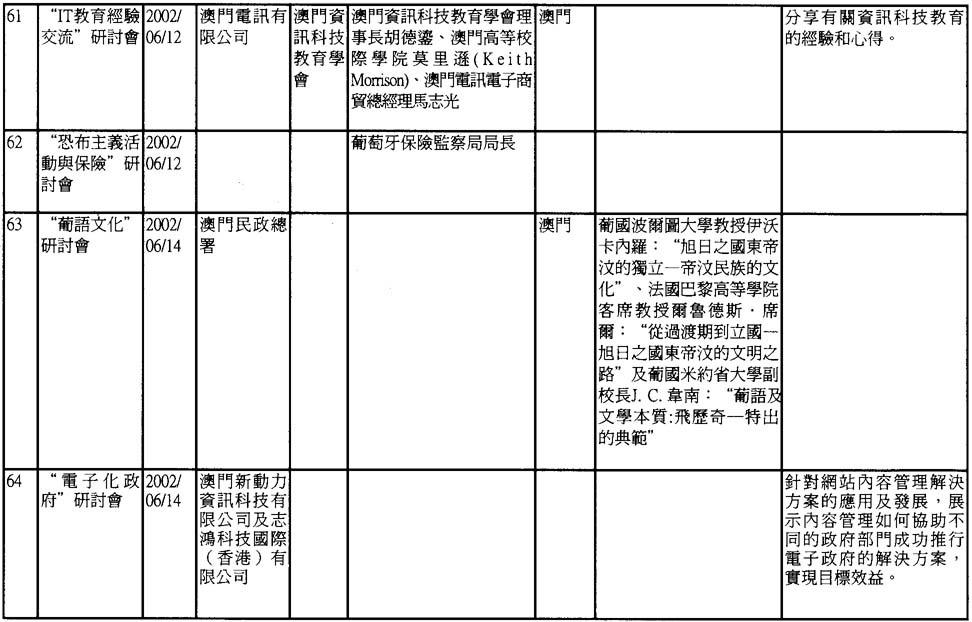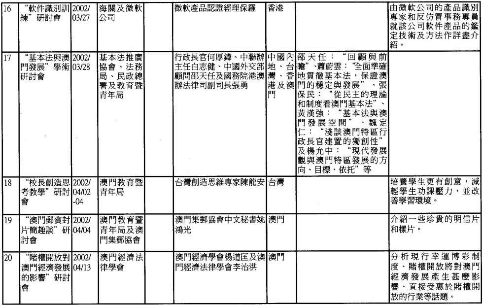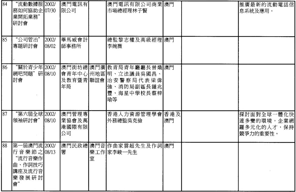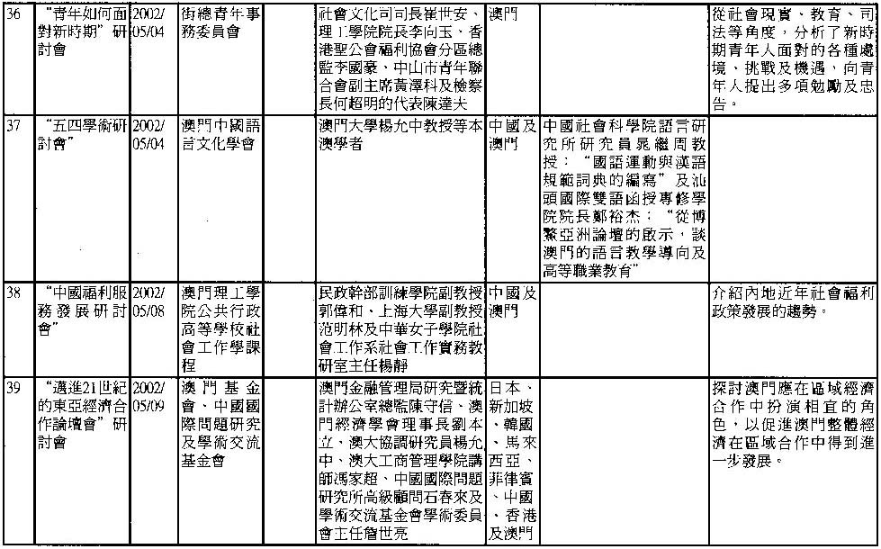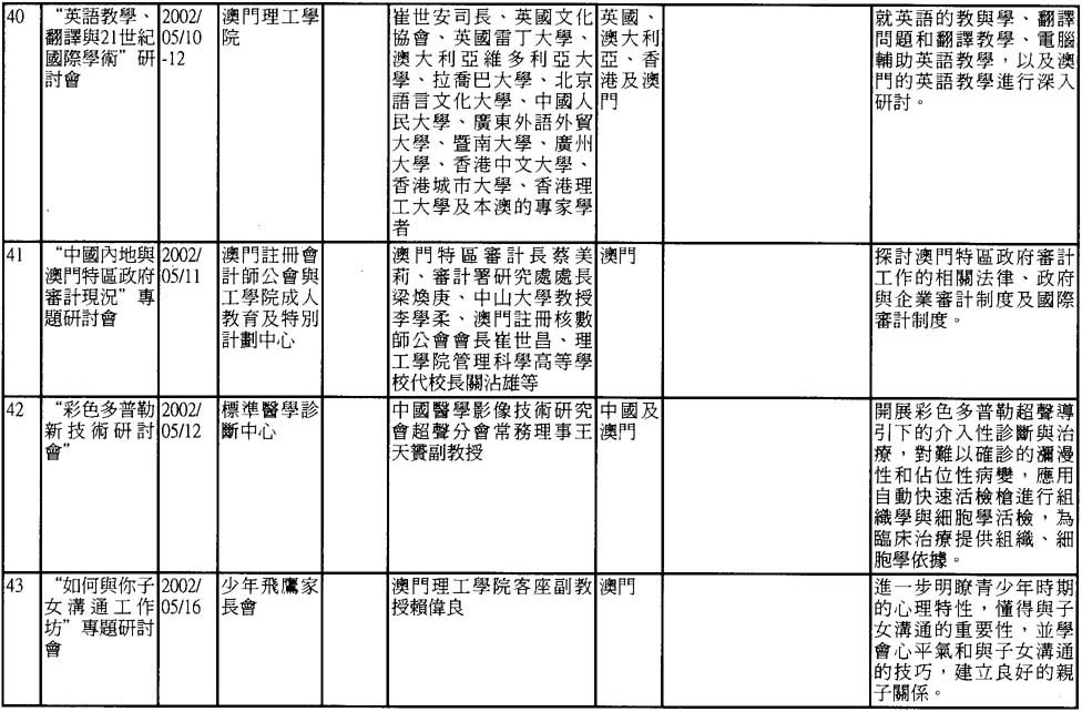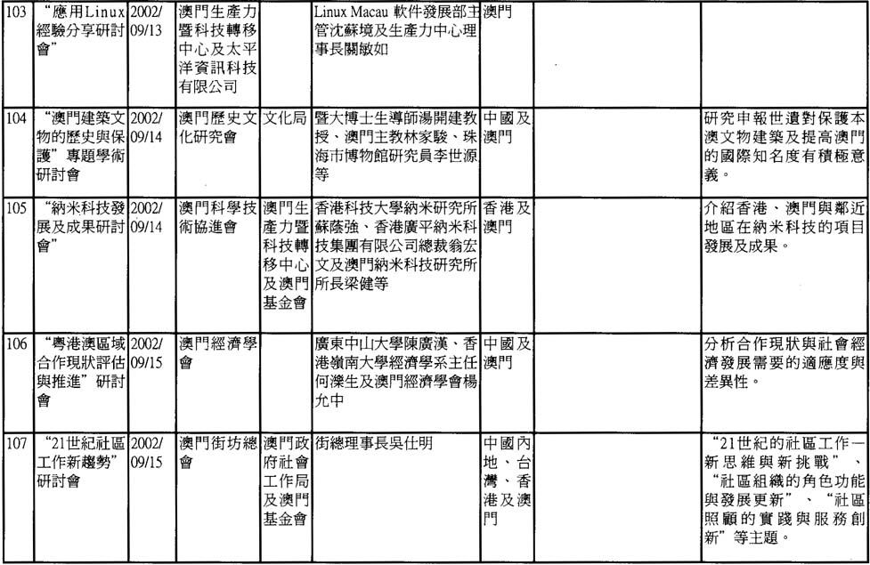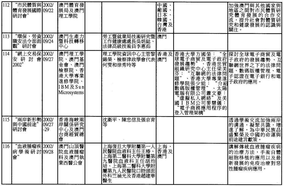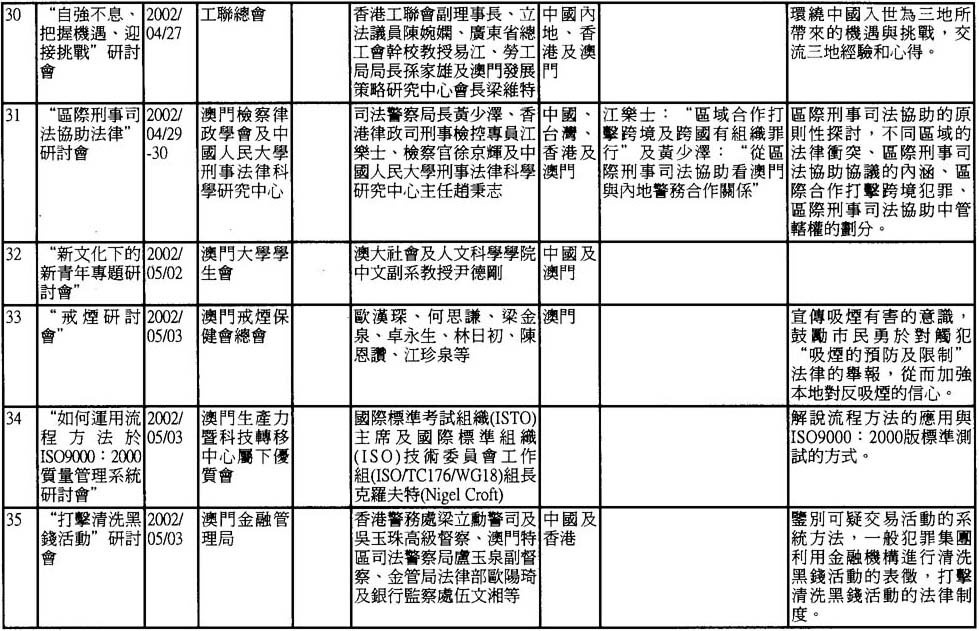 2002年澳門舉辦之研討會資料一覽