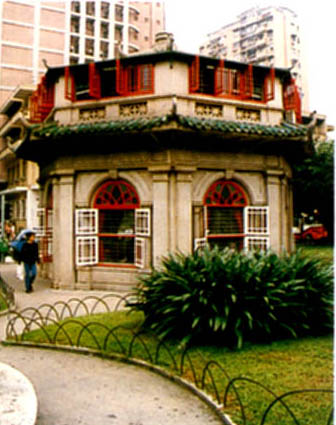 位於澳門半島中部的一個地名,範圍包括八角亭圖書館及南灣花園。在南灣大馬路北端與東望洋新街、嘉思欄新馬路、兵營斜巷之間有一個南灣花園(又名嘉思欄花園)。花園被家辣堂街分為兩部分。東邊的部分在家辣堂街與南灣大馬路之間,在花園和綠樹叢中,有一座飛檐朱欄、精巧別緻的兩層八角亭。過去的南灣花園規模相當大,還有音樂台、噴水池等,建於1927年的八角亭就是過去的酒水部和桌球室。1948年由澳門中華總商會當時的副理事長何賢捐贈給商會,作為公眾閲書報室。市民習慣把八角亭作為一個地名,包括它及其附近。其附近有澳門政府敎育暨青年司、澳門房屋司和澳門大會堂等。