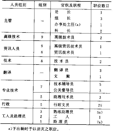 第四条 经四月二十四日第19/95/M号法令修改而附于二月十九日第41/90/M号训令之总督办公室暨政务司办公室技术行政辅助部门之人员编制,由附于本法规之表代替。总督办公室暨政务司办公室技术行政辅助部门人员编制(经训令第311/96/M号修改后之文本)