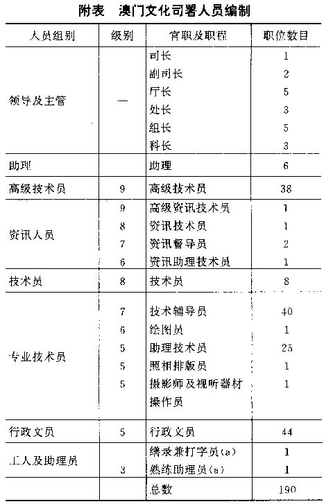 一、澳门文化司署之人员制度,为公共行政工作人员之一般法所规定者。