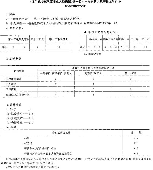 在本通则范围内要求学历之情况下,为所有之效力,在本法规开始生效前军事化人员或消防队( CB)人员所具之“ Fo rmⅢ”(中三)学历资格及葡语第二级水平,等同于葡语第九年级。