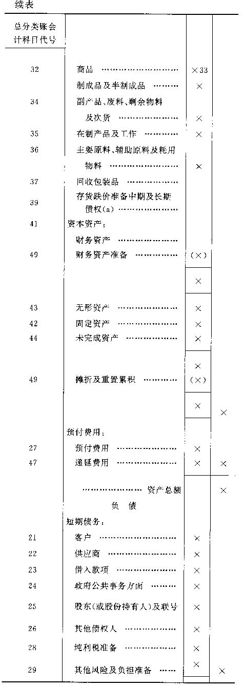五、综合资产负债表的会计科目直接出自总分类账(会计科目代号为两位数),在某些情况,其相应数值是分开记入有关大类的。