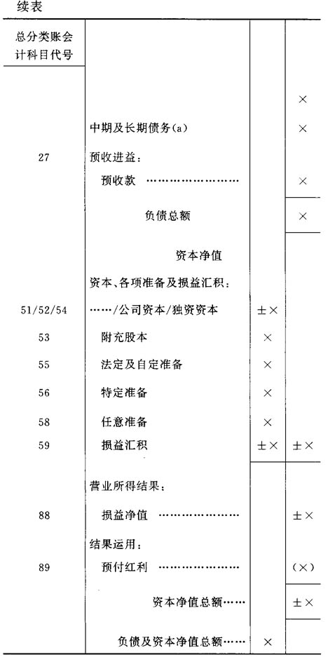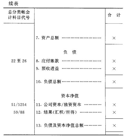 二、按惯例,资产组成第一部分,负债与资本净值则并合为第二部分。资本净值永远列于第二部分,即使假设在会计科目表上结欠数值大于结余数值时亦然。