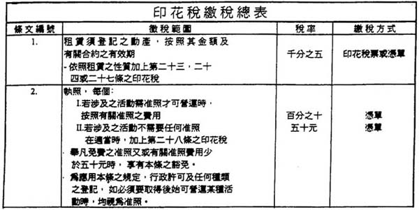 通过上条所述规章之附件“征税总表”内所有税率及缴纳印花税之形式。