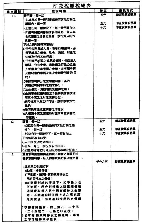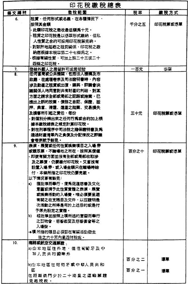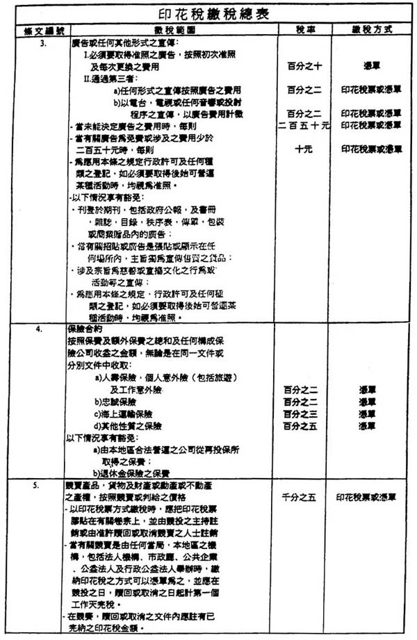 三、此等文件之印花税是依照如在本地区通过之文件的相关税率计算。