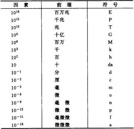 2.国际制度单位的十进倍数及约数的符号及前缀: