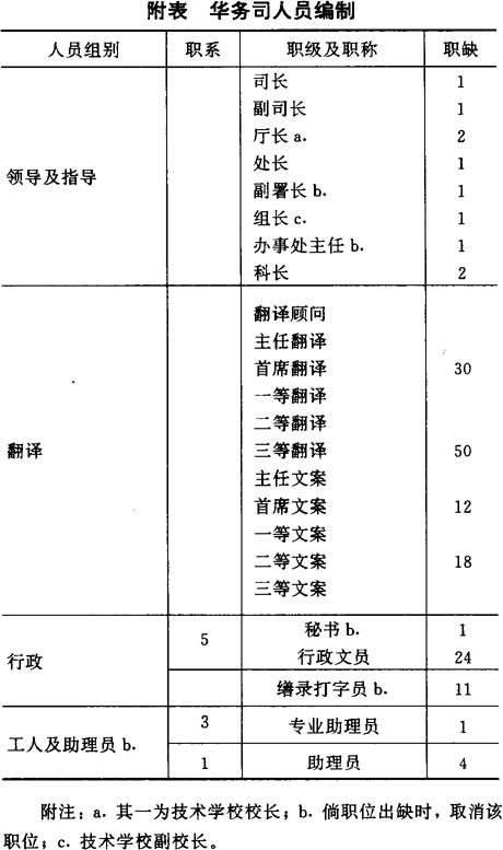 第二条 华务司人员编制由本法令附表代替。
