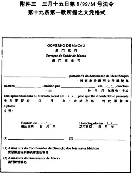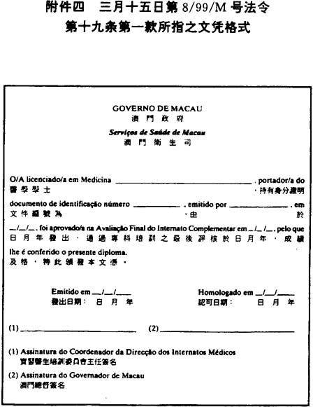 五、同等学历之证明系透过由澳门卫生司司长核准格式之证明书为之。