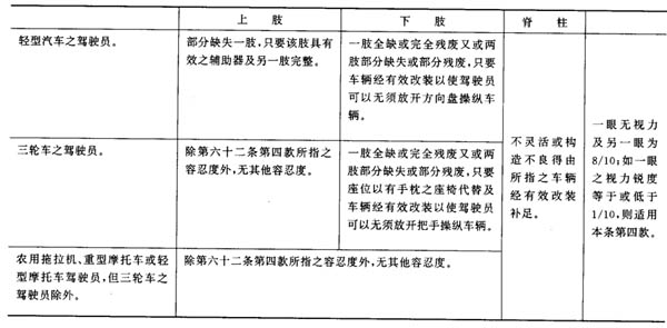 a.本条第四款列明之容忍度不包括持久性或进行性之伤害或变形,该等伤害或变形能导致驾驶能力之减低,尤其是四肢或脊柱之伤害或变形;