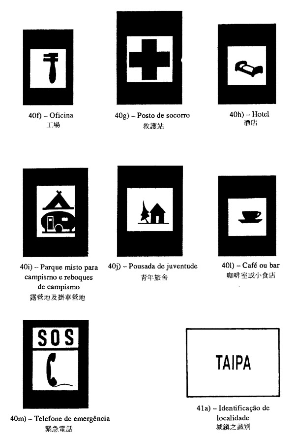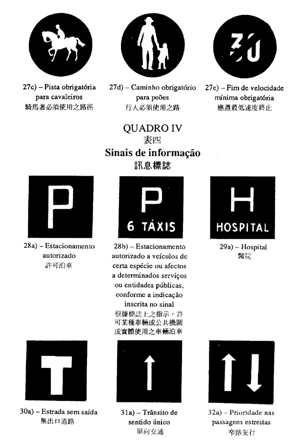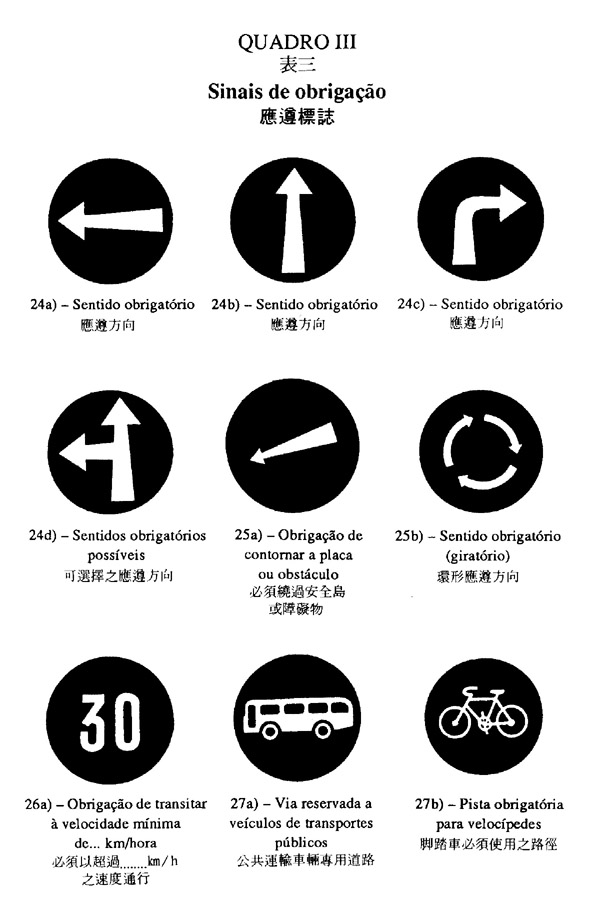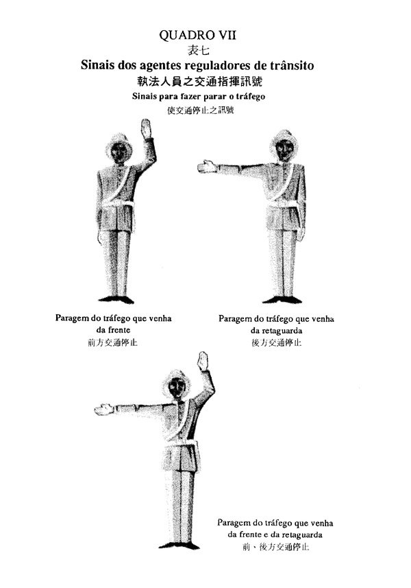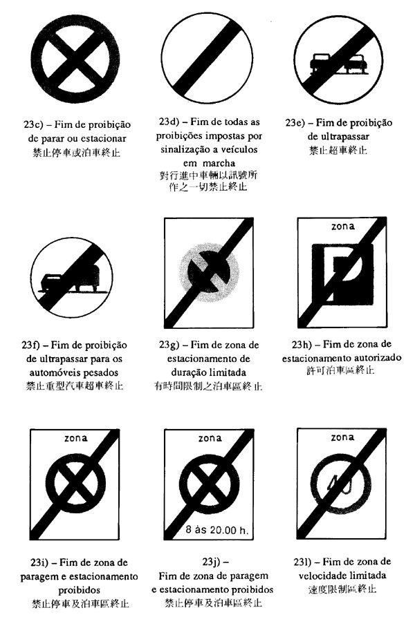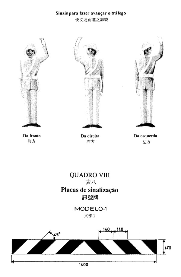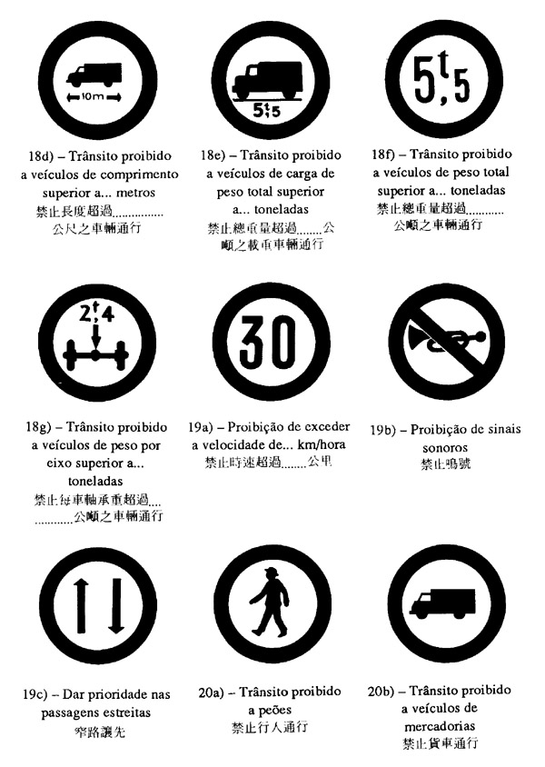 一、在公共道路之图形讯号及灯光讯号,应严格遵守以下各条及本规章附表所指形状及颜色之特征。此等特征应包括讯号中可能使用之文字及数字之字体。