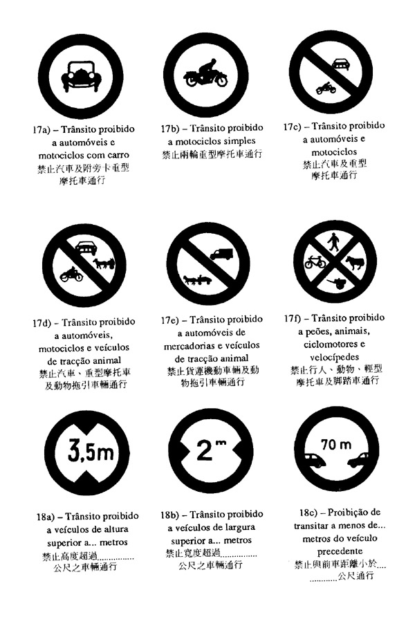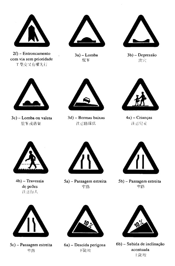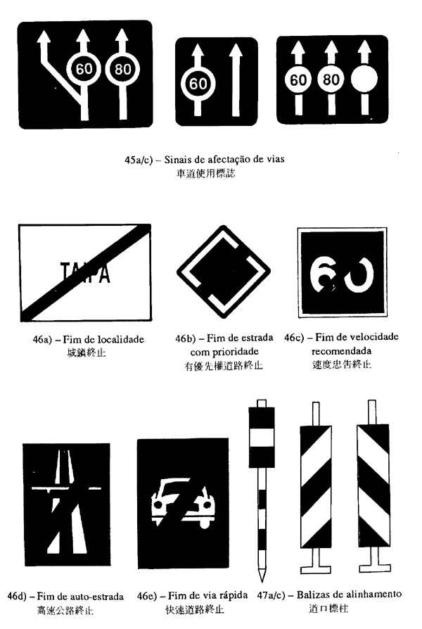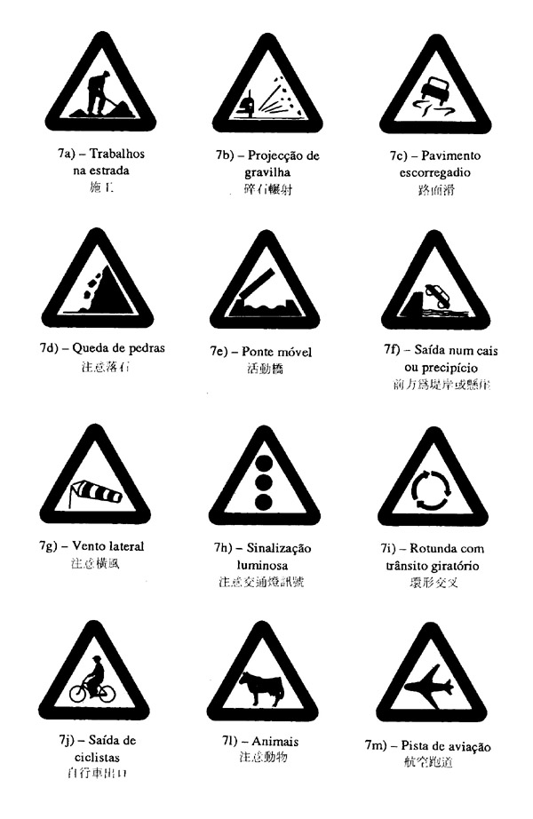 四、警告标志应装置于所指之车道地点150m至250m之间,惟该地点之情况不容许或为标志7a、7e、9a、10a则除外;当在城镇外,标志8a与所指交汇处之最大距离为50m,当在城镇内则为25m。