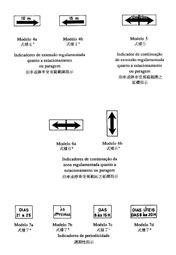 六、在城镇内或为重复同一标志时,得例外使用尺码较第四款规定小之特别标志。