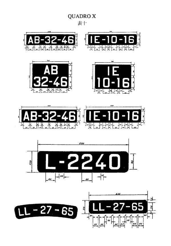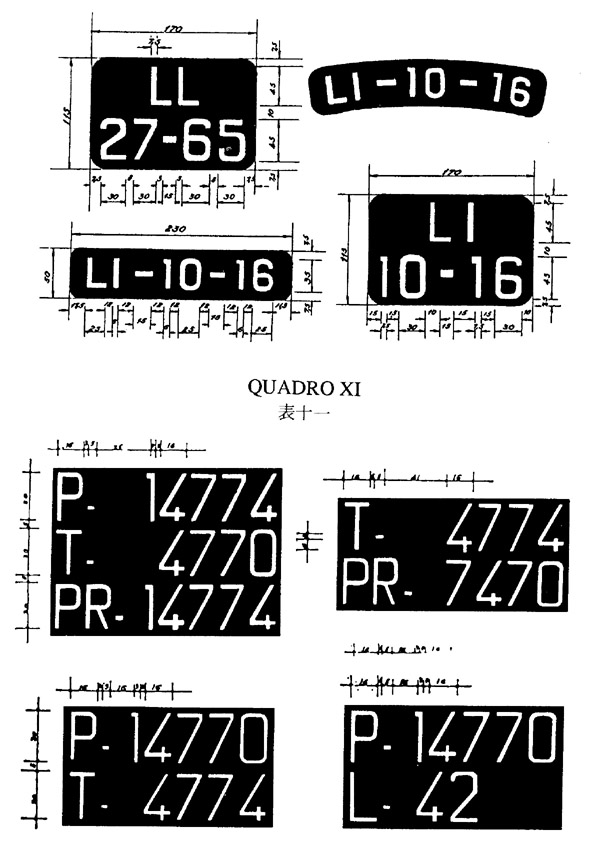 六、汽车后端之号牌:如尺码为52cm×12cm,字母组与数字组应并行排列;如尺码为34cm×23cm,字母组应位于数字组之上。