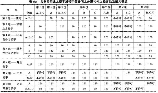 结构或分隔构件依其耐火能力,定为九个等级,而每一个等级为: