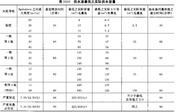 13)与水源相连之主干管道:直径适当,但决不小于80mm之垂直金属管,由该管引出分支管道向安装于每层之装备完善之消防喉供水。